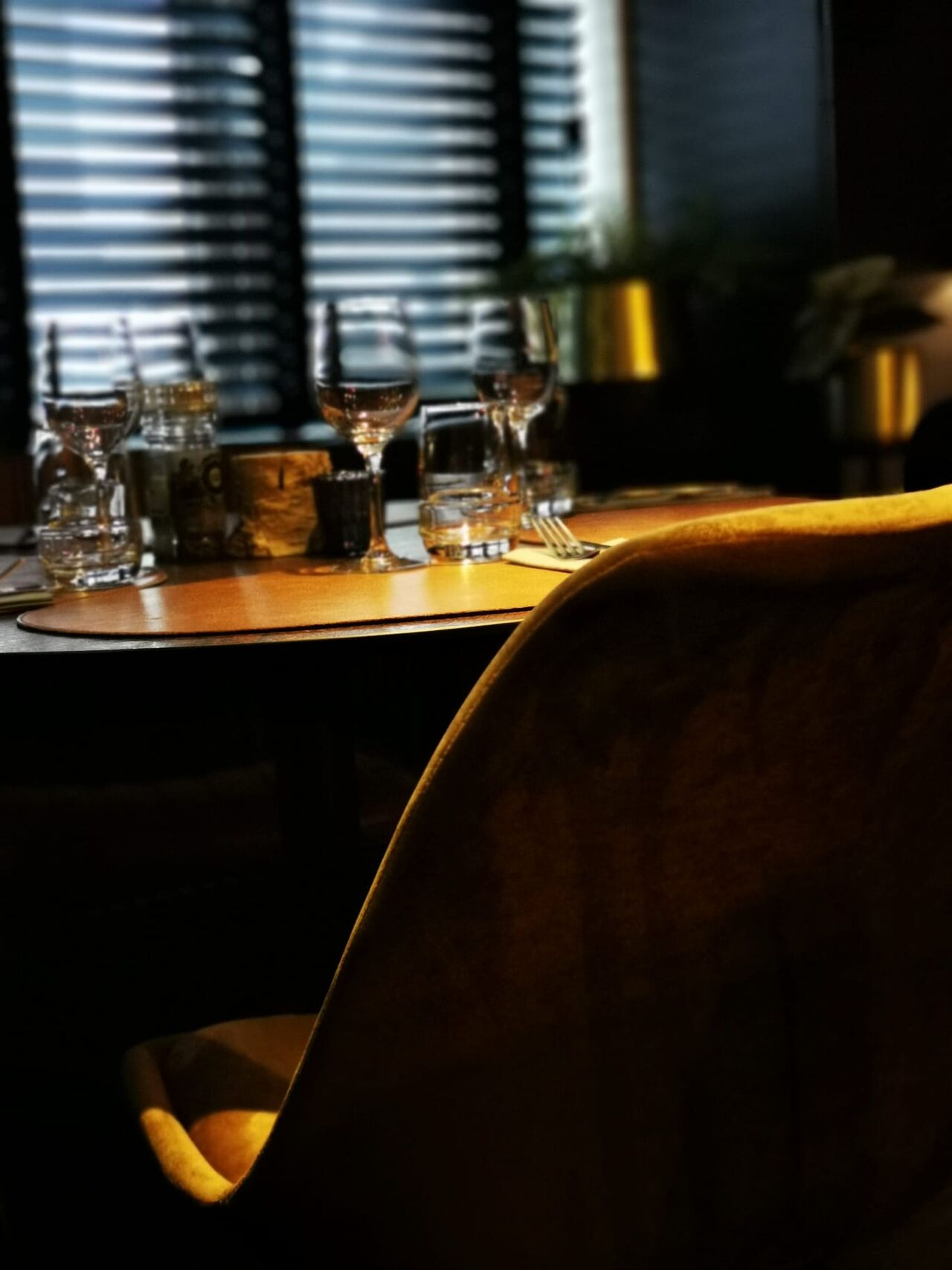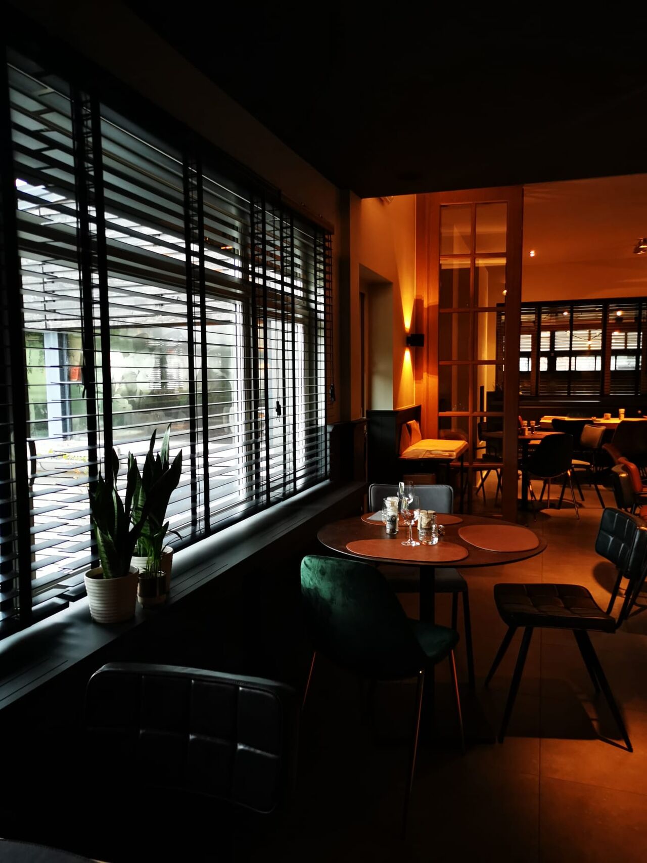 Ecologisch verwarmd in onze cosy zithoeken of comfortabele lederen barkrukken met rugleuning.